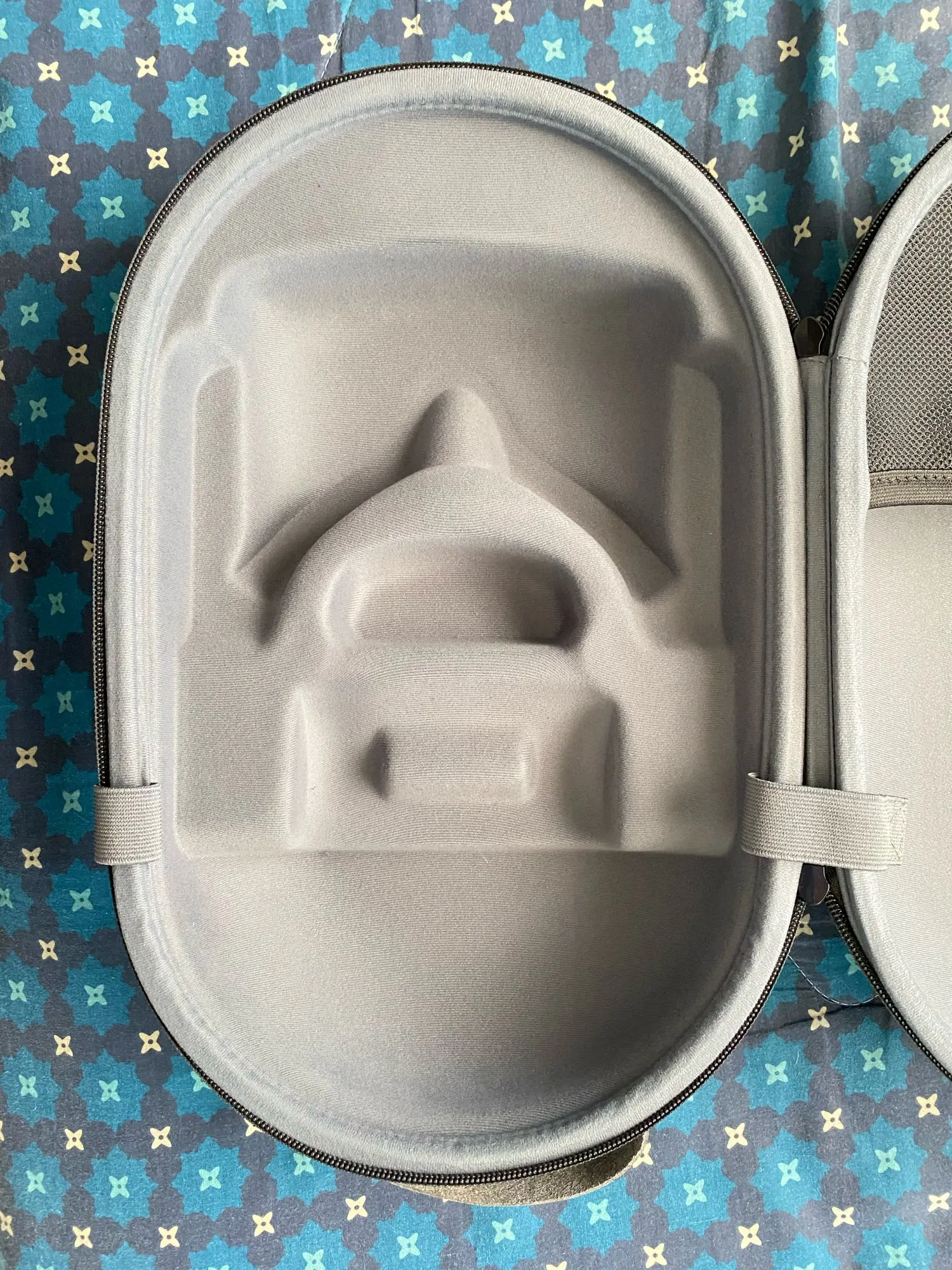Может быть немного дороговато, но продукт хорошего качества. Гарнитура идеально подходит даже с моим ремешком halo (BOBOVR M2), и есть место для зарядного устройства и нескольких аксессуаров. Оболочка кажется достаточно жесткой для защиты продукта и достаточно гибкой для поглощения ударов. В целом я очень доволен товаром.