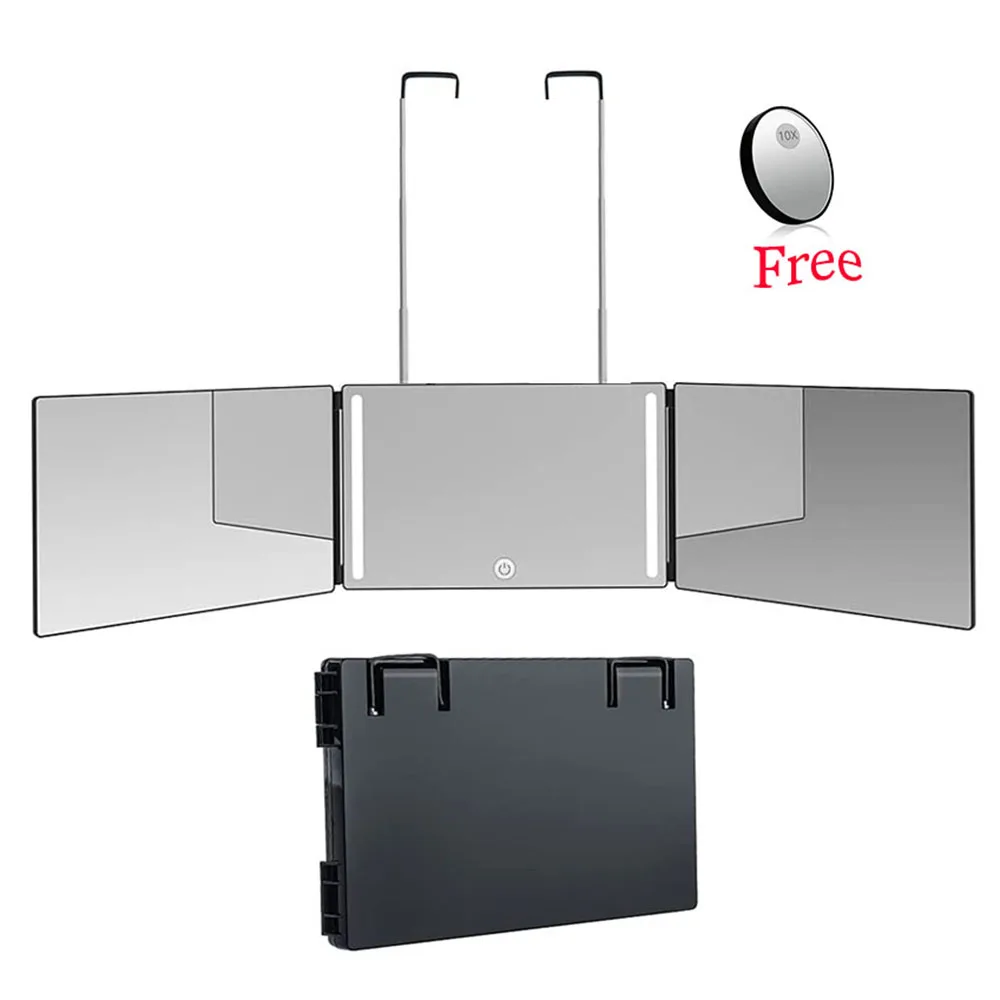 Косметическое зеркало тройного сложения с маленьким 10-кратным увеличением, портативное перезаряжаемое светодиодное зеркало для дома, ванной комнаты FBS889