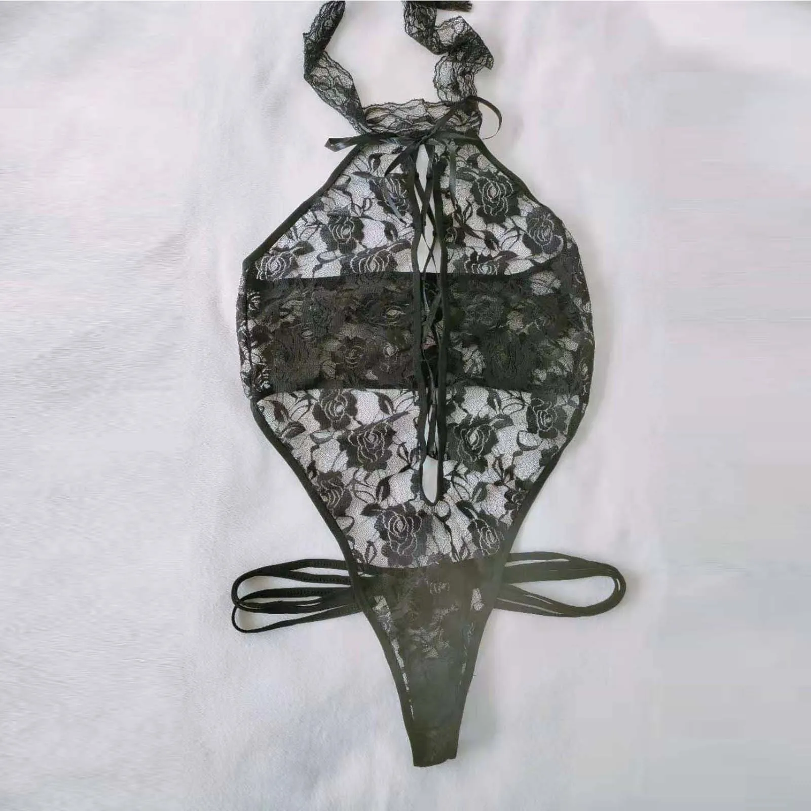 Женское боди 2021, соблазнительное черное сексуальное нижнее белье с лямкой на шее, ажурное порно, нижнее белье, прозрачное ночное белье, женское Кружевное боди