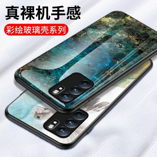 Compatible OPPO Model 11For A94 5g Oppo Marble Glass Phone Case