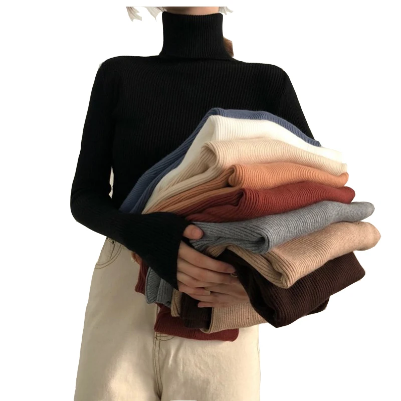 Базовый женский свитер с высоким воротником, сезон осень-зима 2021, Женский облегающий пуловер, повседневный мягкий вязаный свитер, мягкий теплый джемпер, свитер, топы