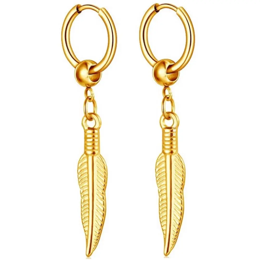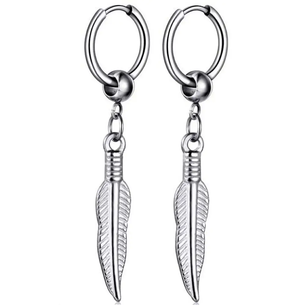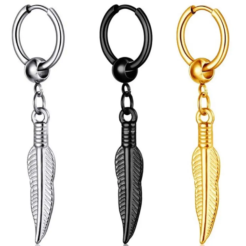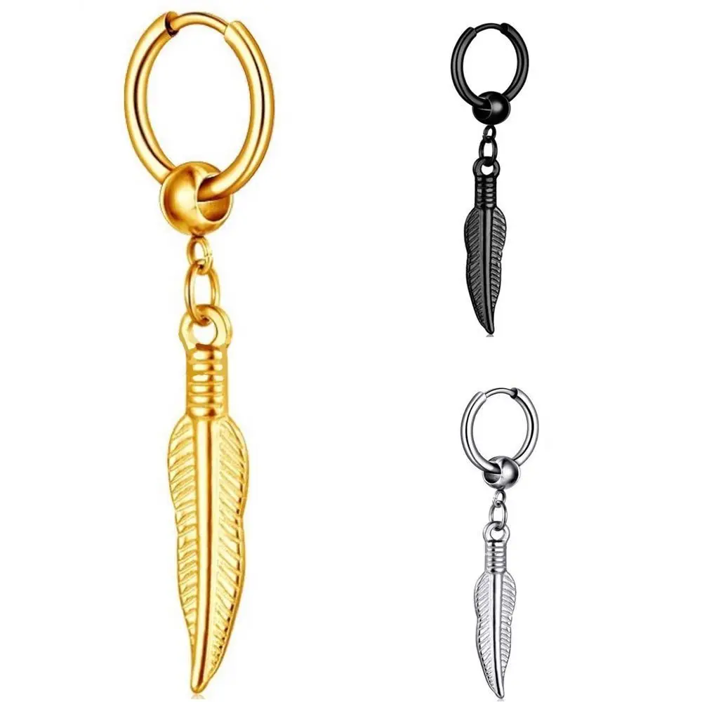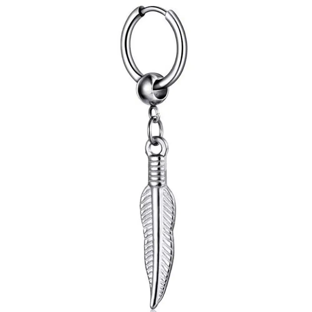 Серьги-кольца из нержавеющей стали с перьями для мужчин и женщин