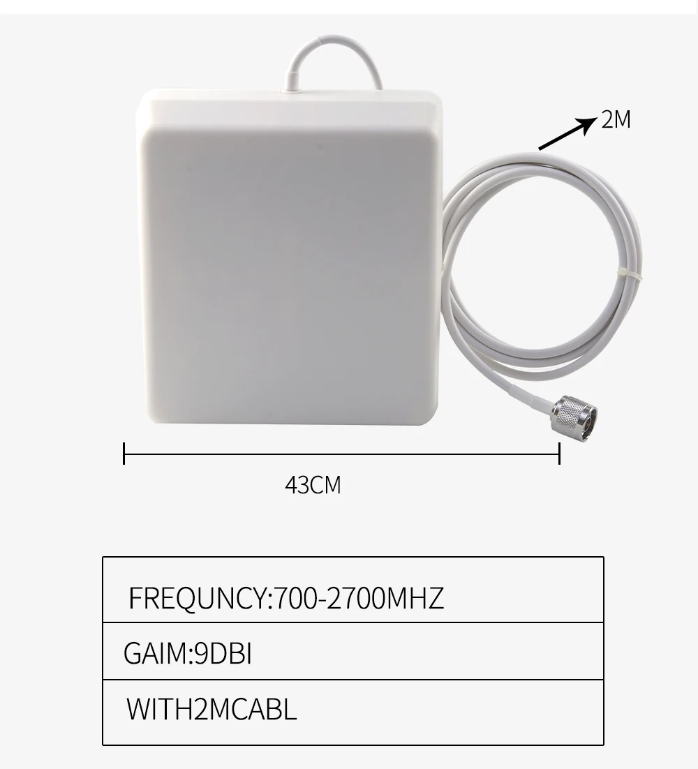 Самая мощная Внутренняя антенна 9 dBi усиленная панельная антенна с кабелем 2 метра. Используйте его для подключения к порту «Mobile» усилителя.