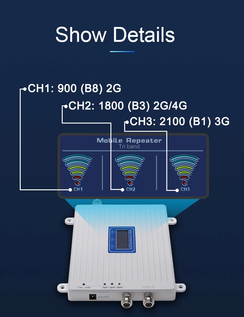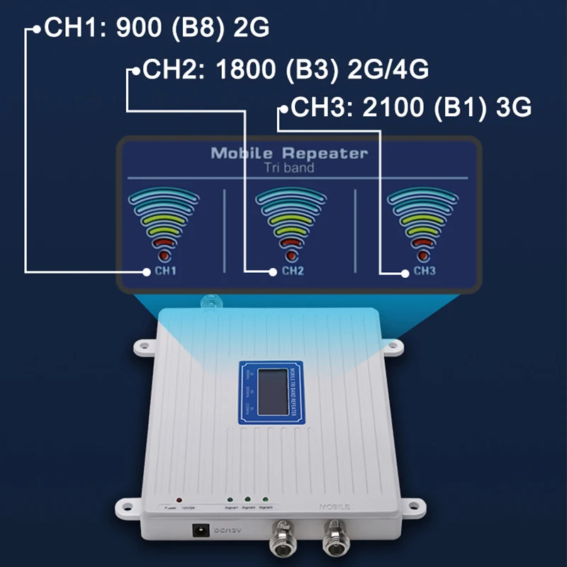 Усилитель сигнала, усилитель сотовой связи, ретранслятор Gsm 2g 3g 4g, мобильный телефон трехдиапазонный усилитель сигнала GSM900 LTE1800 WCDMA2100