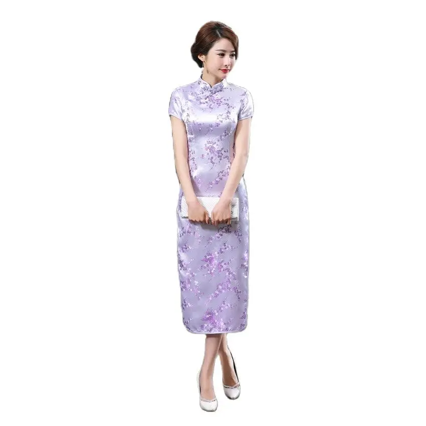 Платье женское китайское традиционное шелковое атласное, длинное пл...