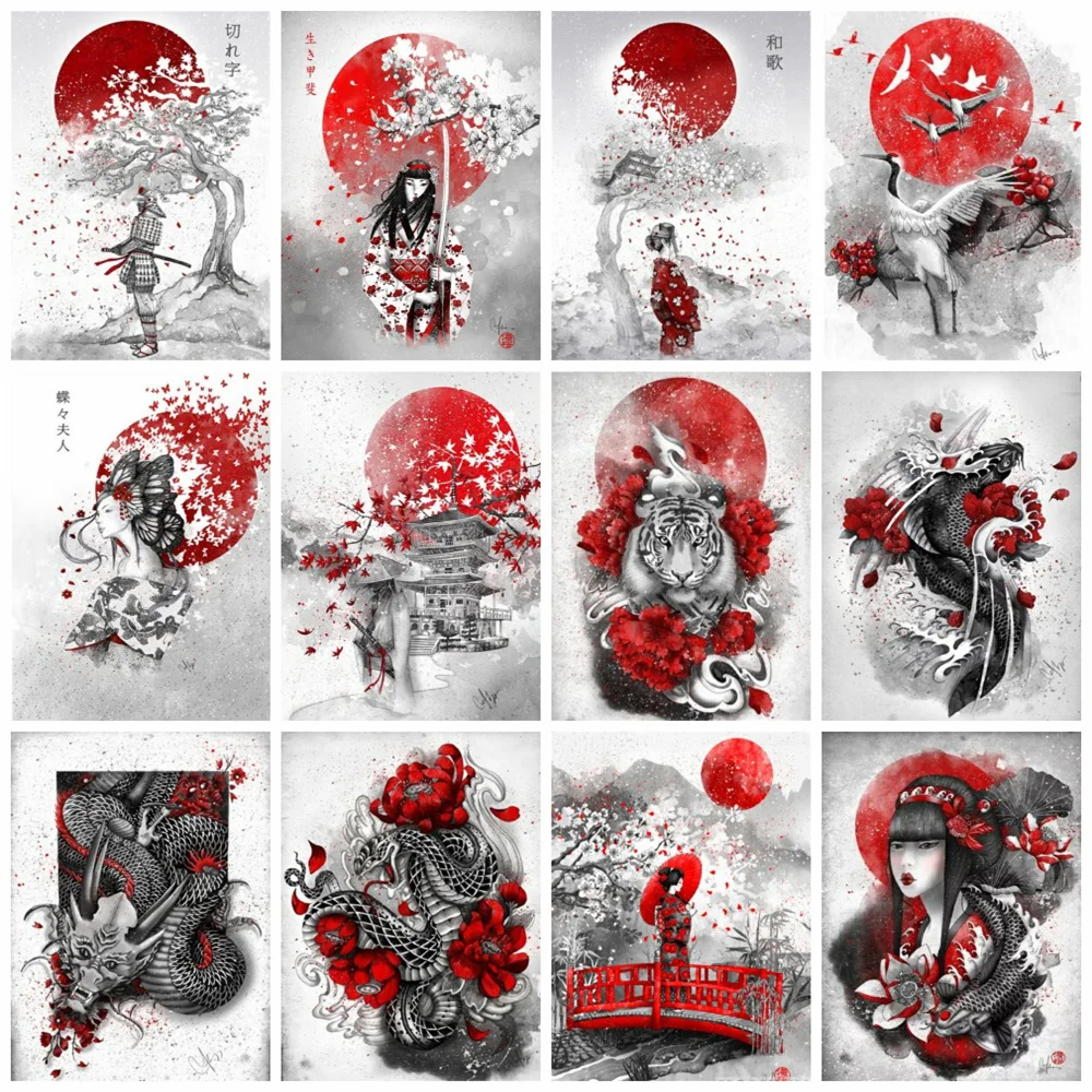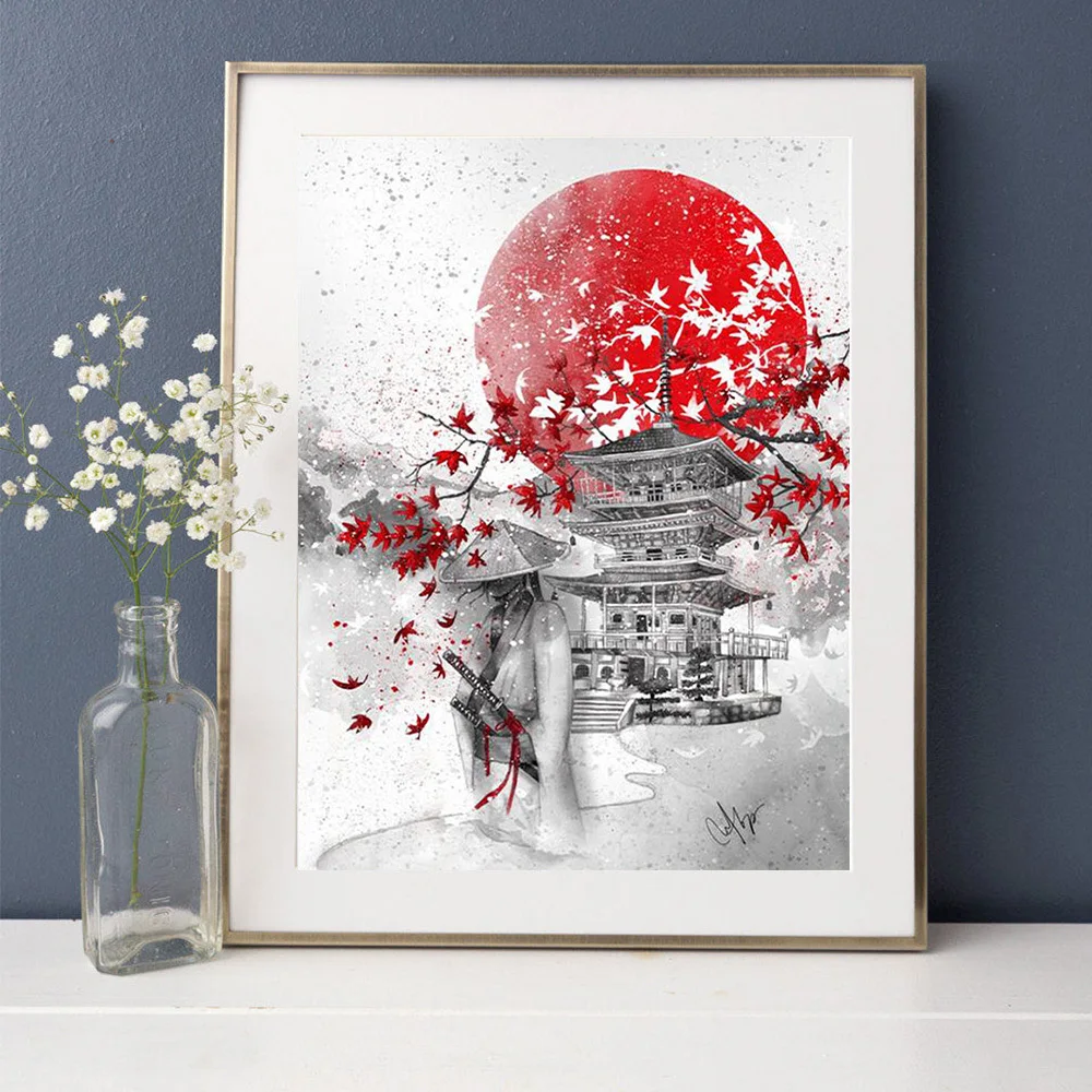 Алмазная 5d картина HUACAN, мозаика с Луной в японском стиле, вышивка крестиком, домашний декор