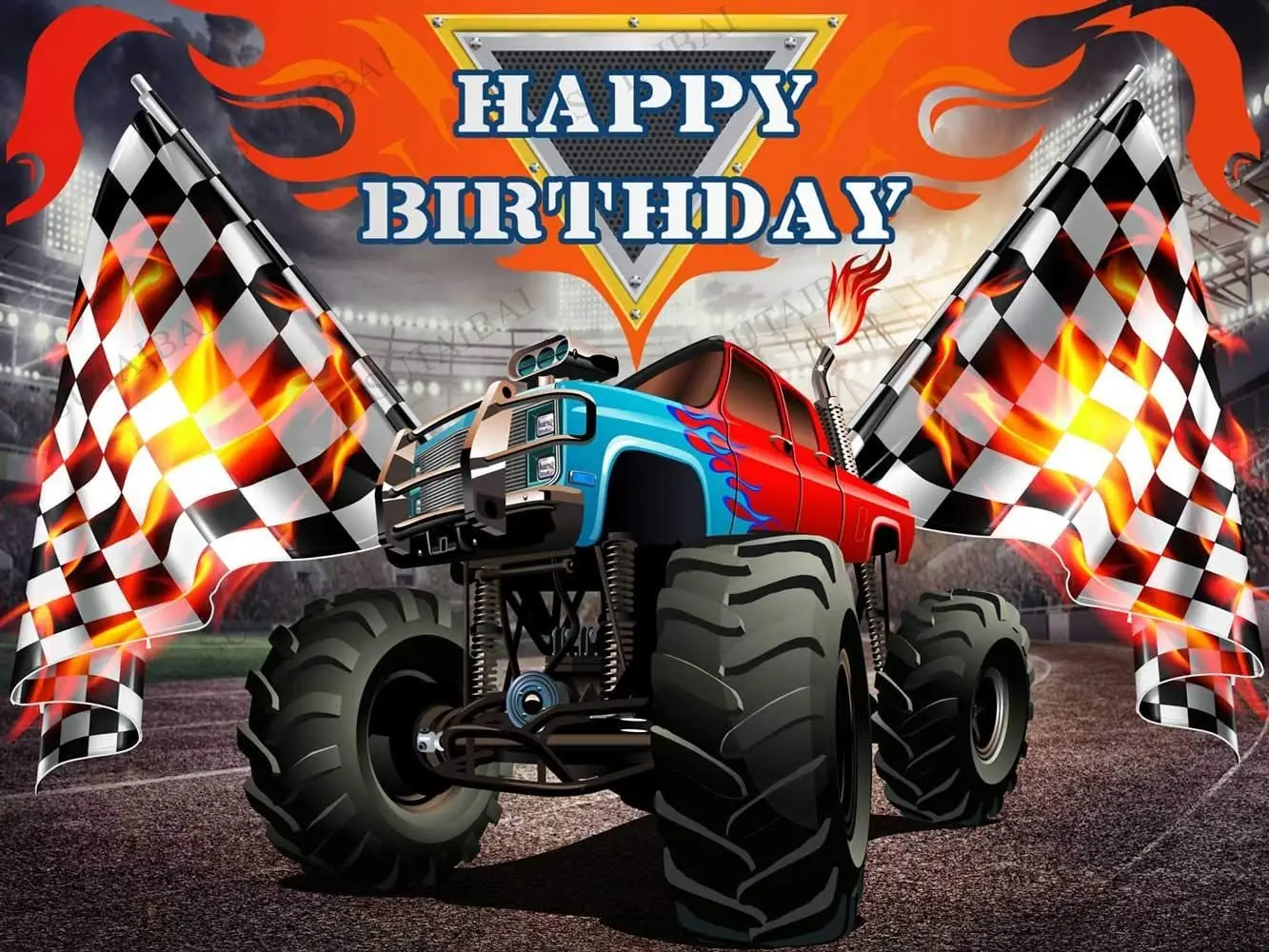 Фон для фотосъемки с изображением монстра грузовика, празднования дня рождения, гонок, машины, гравировка, копатель, клетчатый флаг, фон для фотосъемки для детского декора