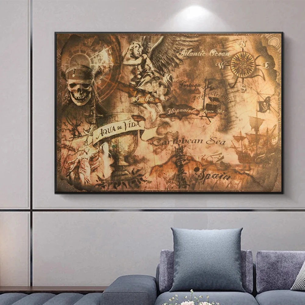 Классический фильм Пираты Карибского моря, волшебный компас, Карта сокровищ, мультяшный персонаж, картина, декор для гостиной