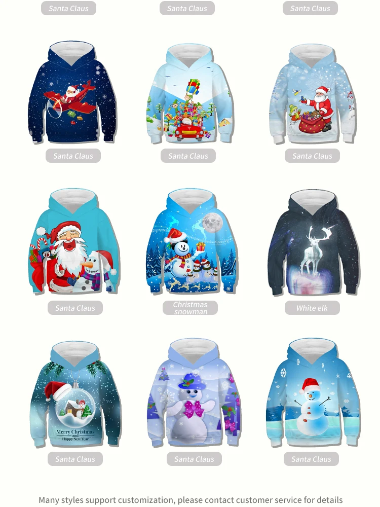 Толстовки с капюшоном в подарок на Рождество, тонкие свитшоты, Детс...