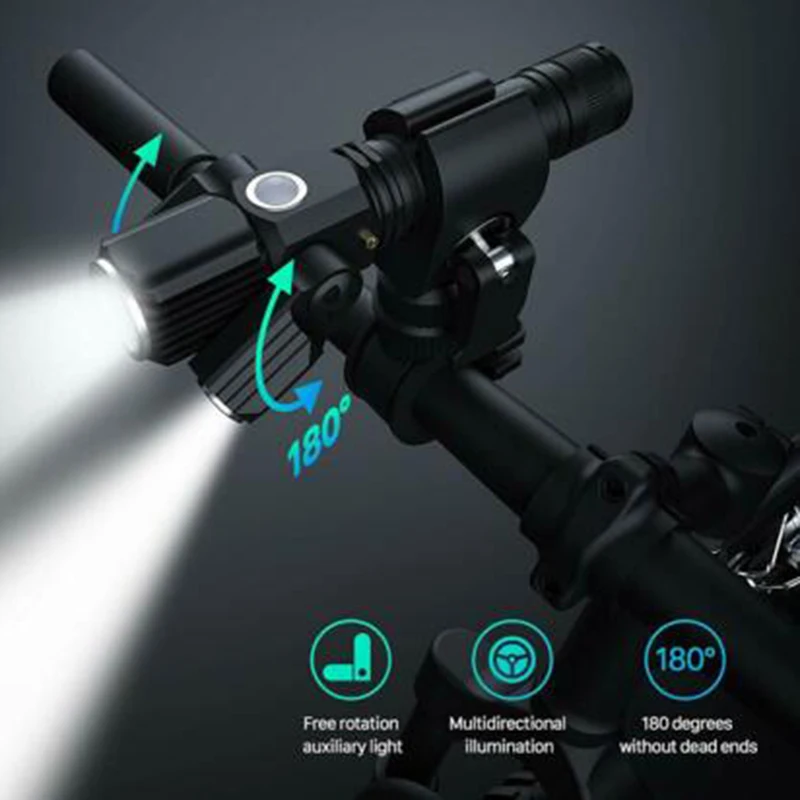 lamp, double Q5 LED auxiliary lamps, up to 500lm. The direction of auxiliary lamps can be adjusted to meet different