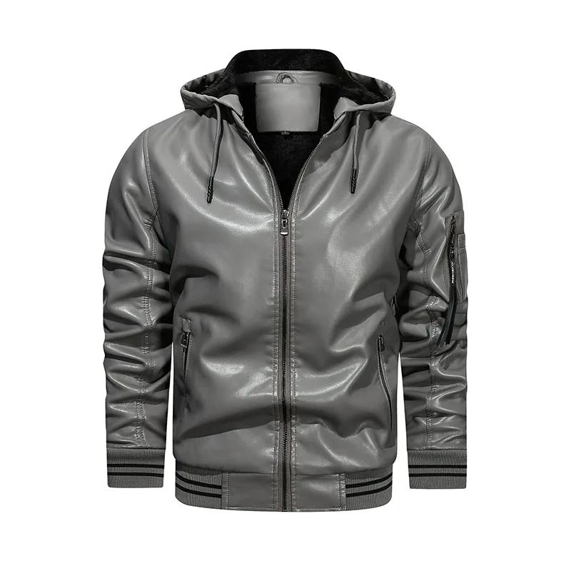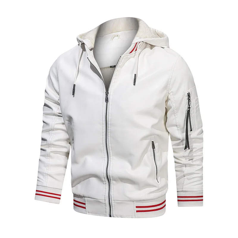 Мужская повседневная Байкерская кожаная куртка с капюшоном, модная ...