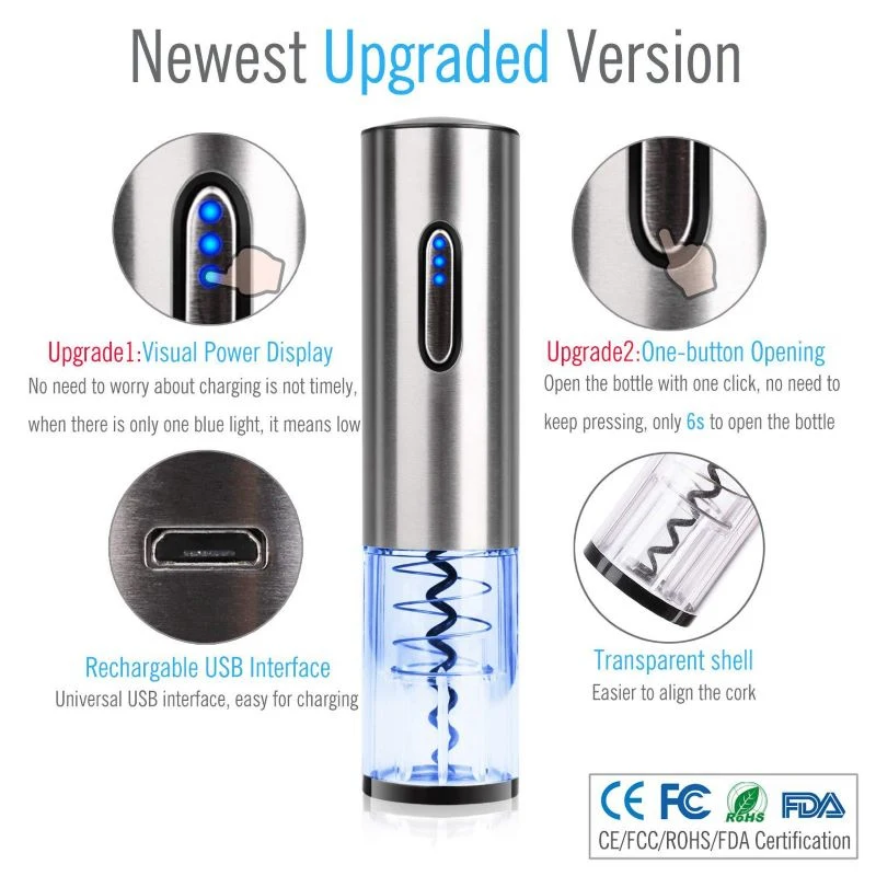Резак из алюминиевой фольги может легко удалить уплотнения для бутылок. Usb-кабель для зарядки (без необходимости замены аккумулятора). ЭТОТ автоматический Штопор-это идеальный компаньон для каждой бутылки вина. Идеальный подарок для семьи и друзей.
