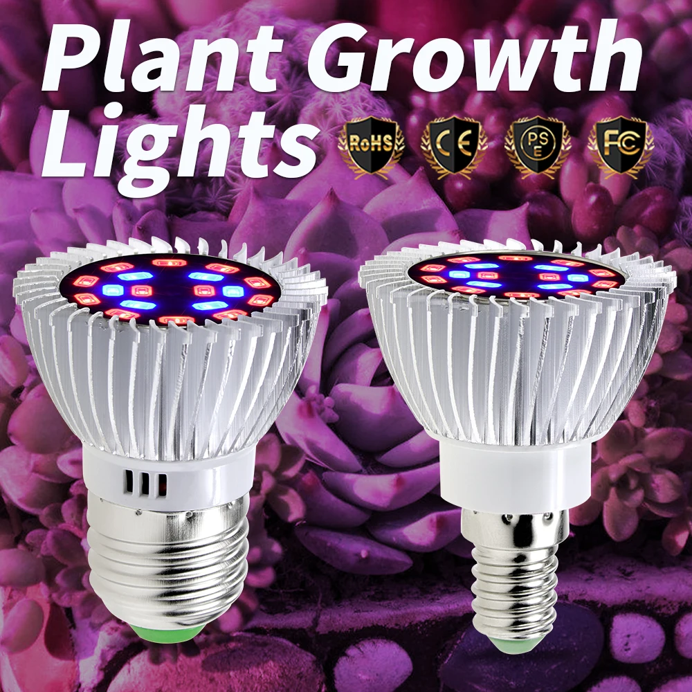 Светодиодная лампа E14 для выращивания растений, 220 В, Е27, 18 Вт