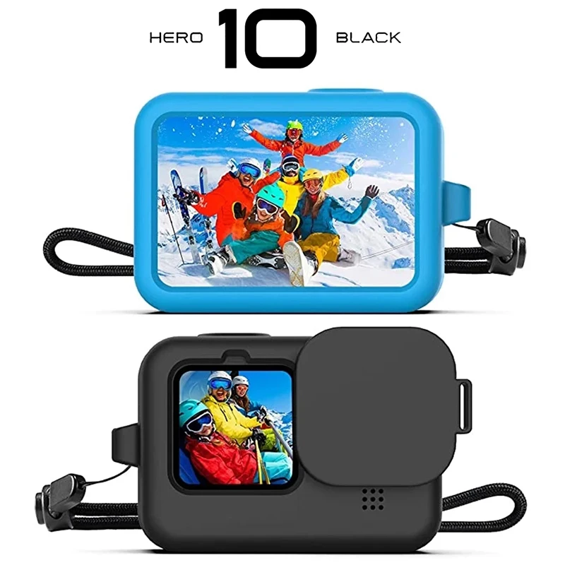 Защитный чехол для GoPro Hero 10, черный Чехол-рамка + крышка для объектива, защитный силиконовый чехол для Go pro 10 с аксессуаром для шнурка