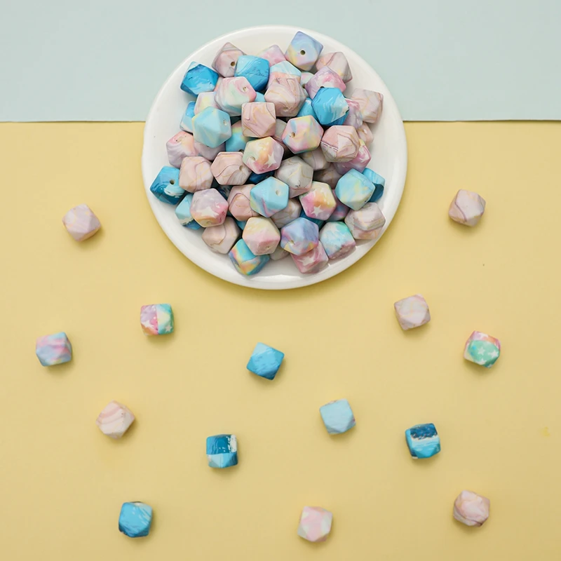 20 шт., шестигранные силиконовые бусины для прорезывания зубов, 14 мм