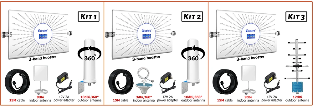 Комплект 1:Усилитель + наружная антенна 360 ° omni (10dbi) + Внутренняя антенна (9dbi) + кабель 15 м