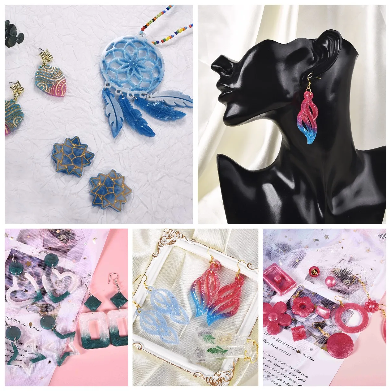 DIY УФ эпоксидной смолы звёздные серьги силиконовые аксессуары прес...