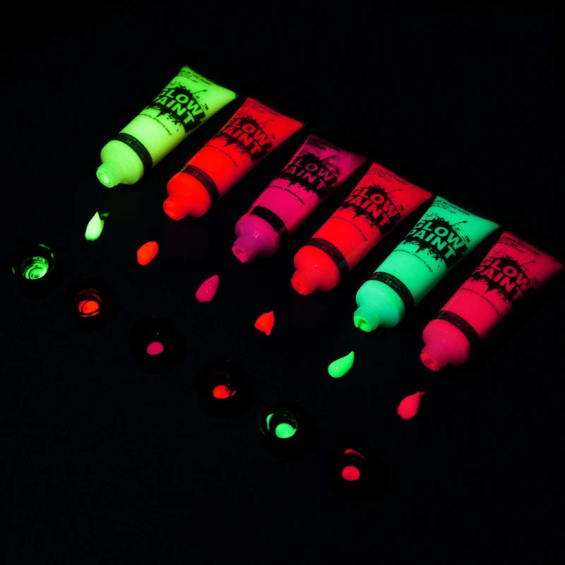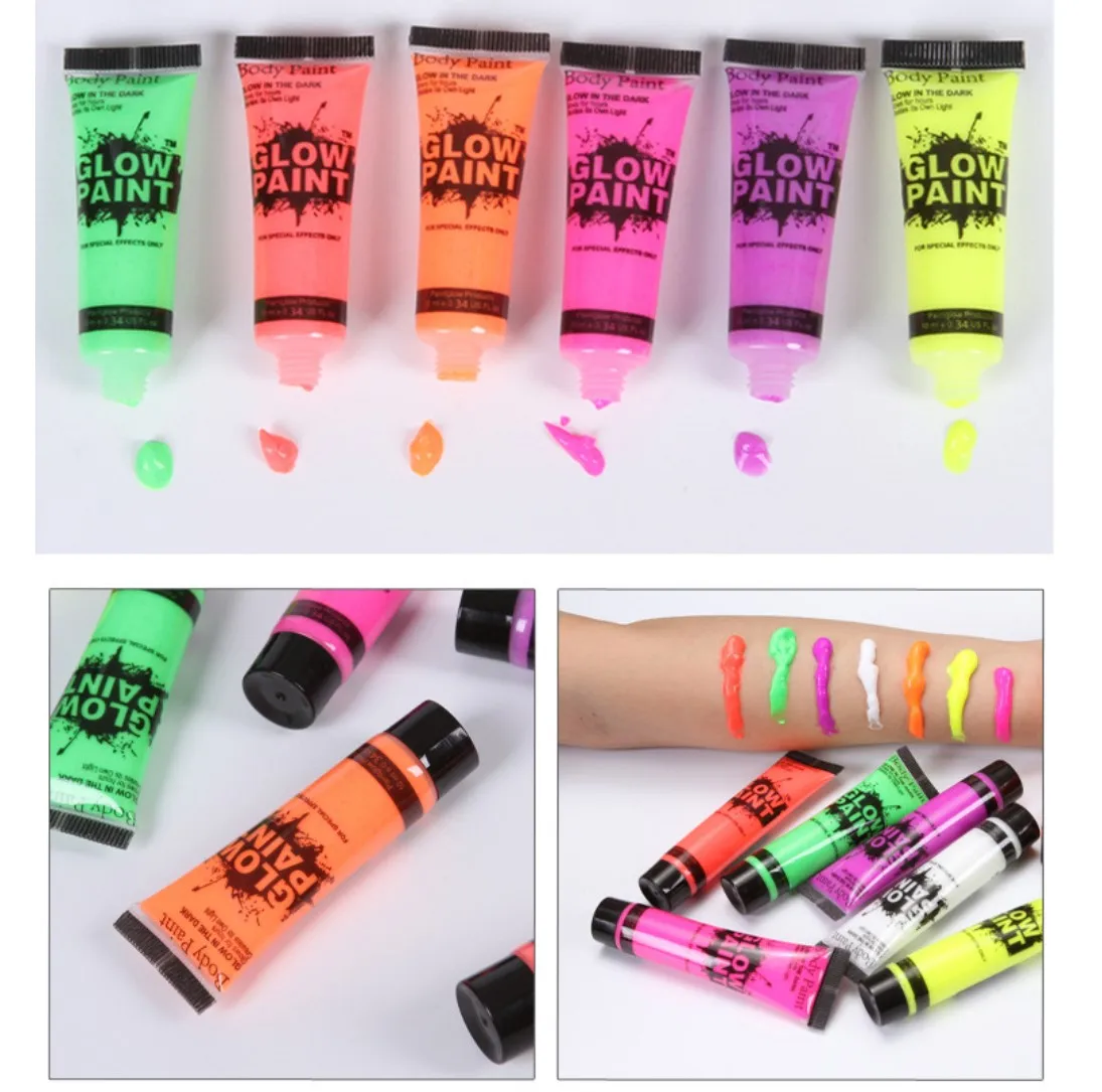 24 шт./компл. неоновая флуоресцентная УФ краска для тела 6 цветов краска для лица светящийся акриловый краситель s Art для Хэллоуина Рождественская вечеринка макияж