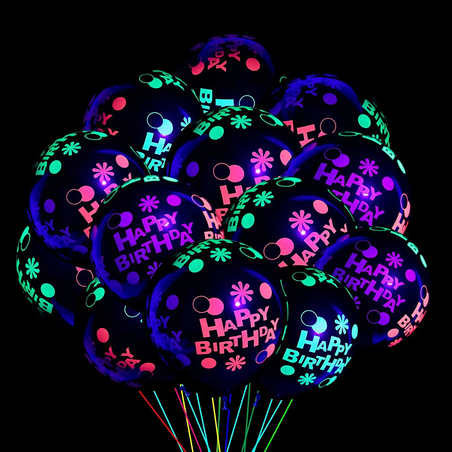 Неоновые светящиеся воздушные шары на день рождения, светящиеся в черном цвете, флуоресцентные шары на неоновый день рождения, светящиеся в 80-х 90-х тематические праздничные украшения