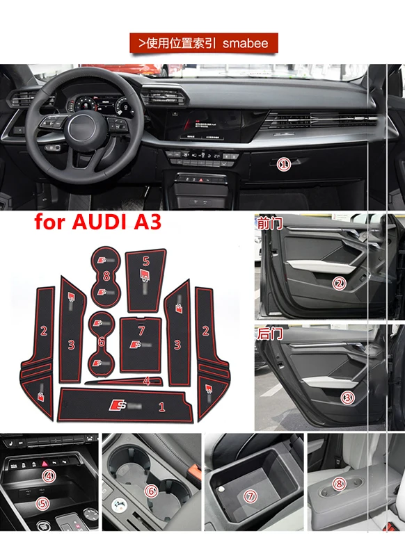Противоскользящий коврик, коврики для телефонных ворот, резиновые прокладки для чашек, коврик для AUDI A3 8Y MK4 2021 2022, нескользящий коврик для межкомнатной двери автомобилячашки