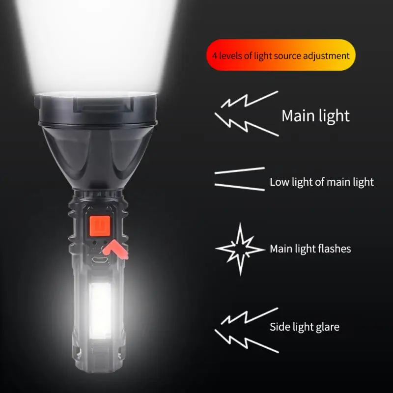 4 Lighting Modesstrong light-low light-strobe-COB side light