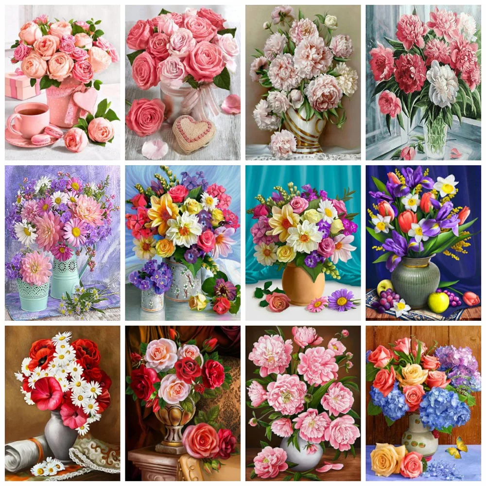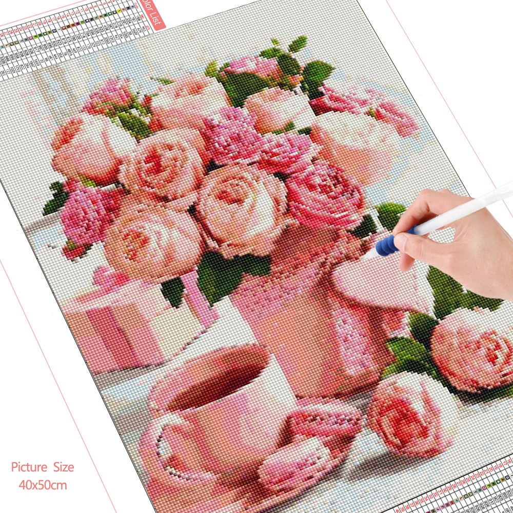 Алмазная 5d картина HUACAN с розами, квадратнаякруглая мозаика сделай сам с вышивкой ромашки, цветочный чехол, стикер для декора