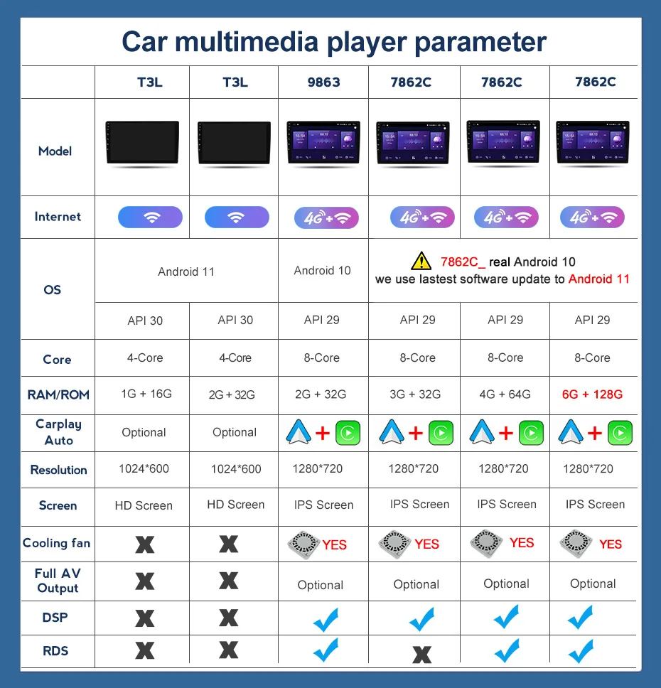7862 лучший чип на рынке в настоящее время, он работает быстрее, чем все другие типы. Балл ANTUTU составляет 181063, что лучше, чем PX6, 9853 , PX5, MTK и всех других типов 4 + 64G на рынке. По сравнению с другими типами радио, радио 7862 может загружать больше видов приложений Android с Android market, и приложение может работать лучше.