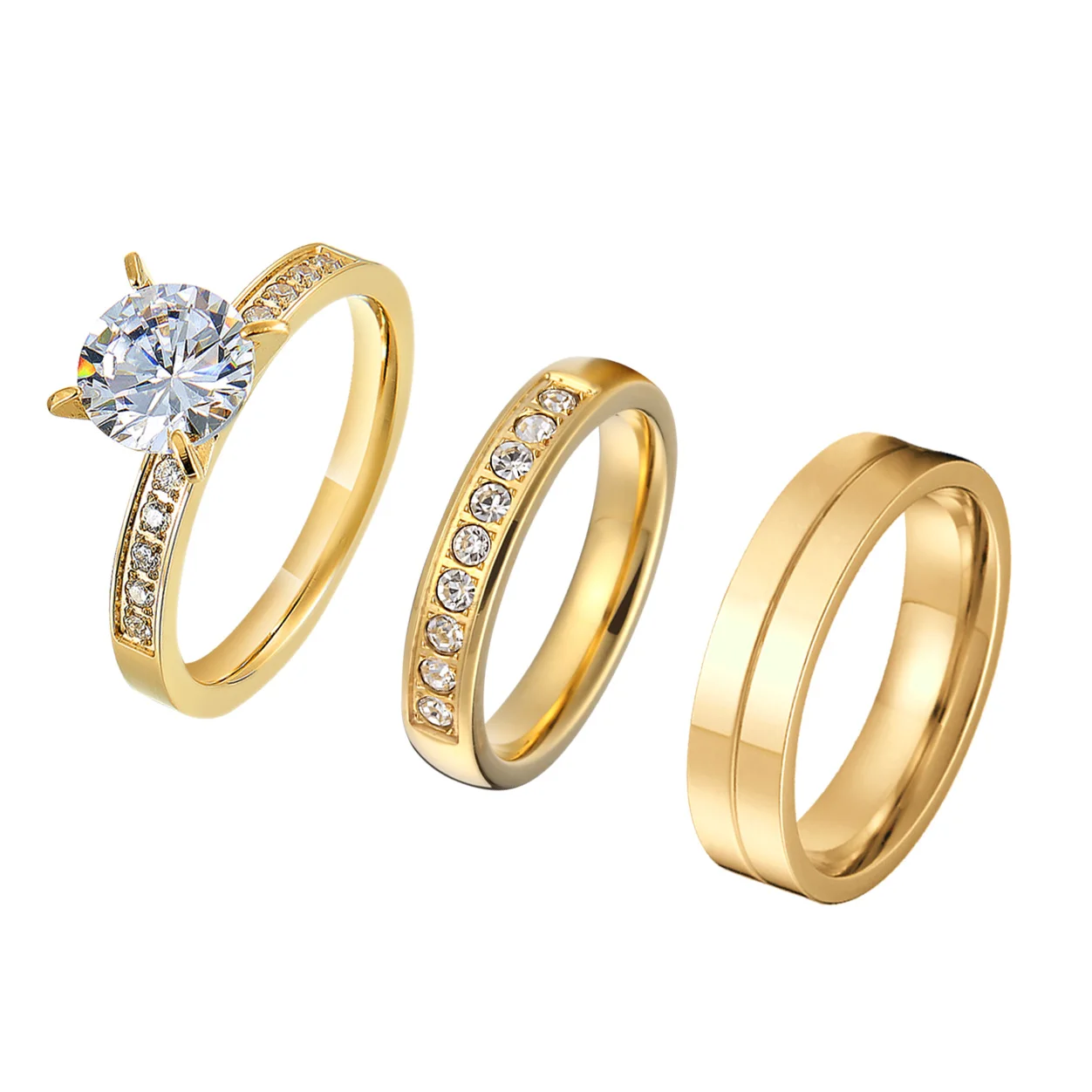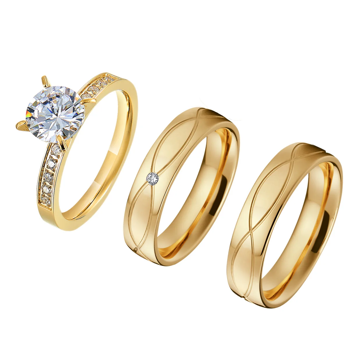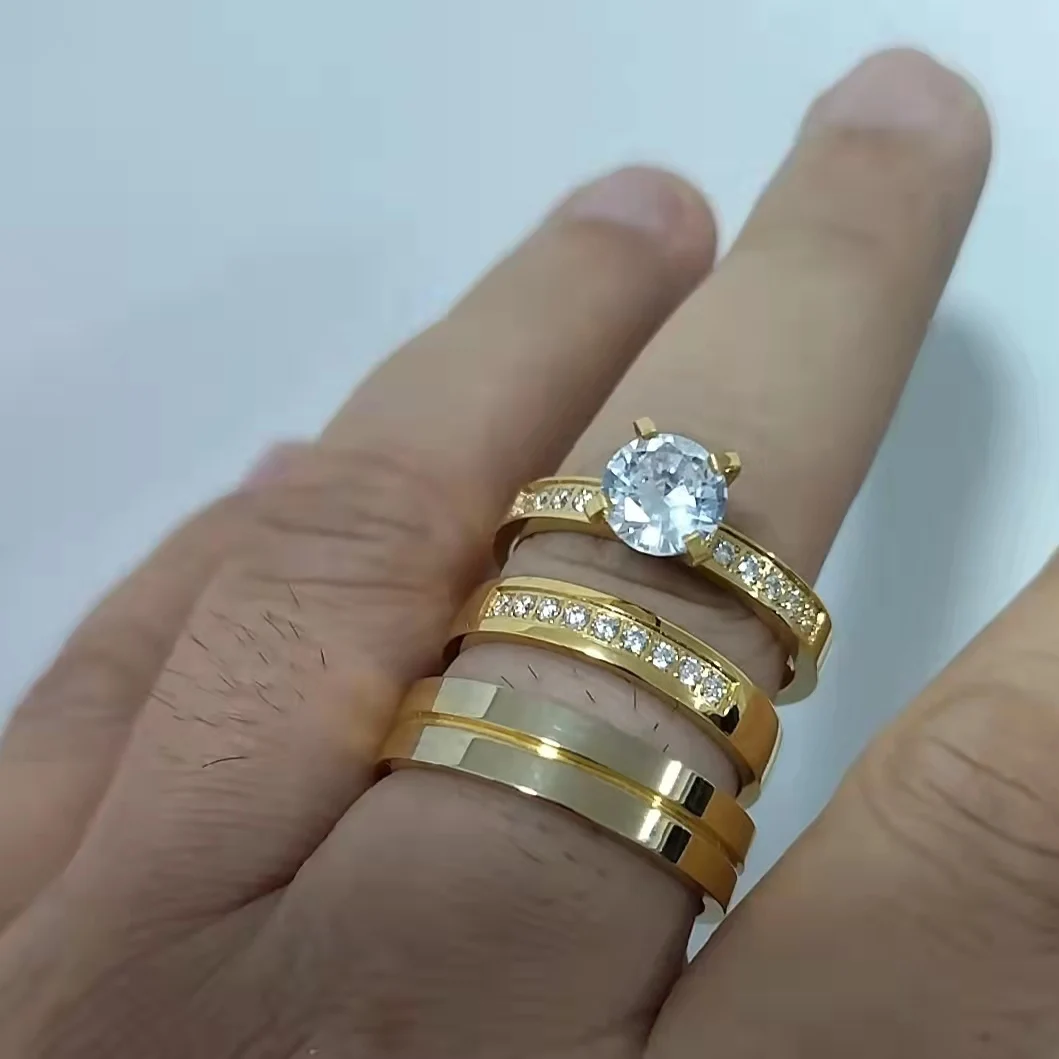 Его и ее невесты 3 шт золотые свадебные кольца на годовщину набор д...