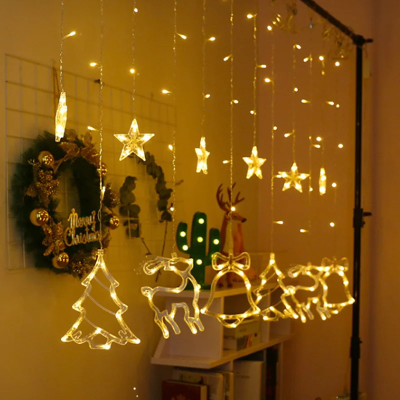 Светодиодная гирлянда с Луной и звездами, Рождественское украшение, празднисветильник освещение, фея на окно, свадьбу, вечеринку