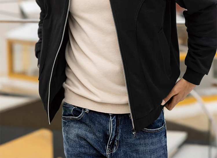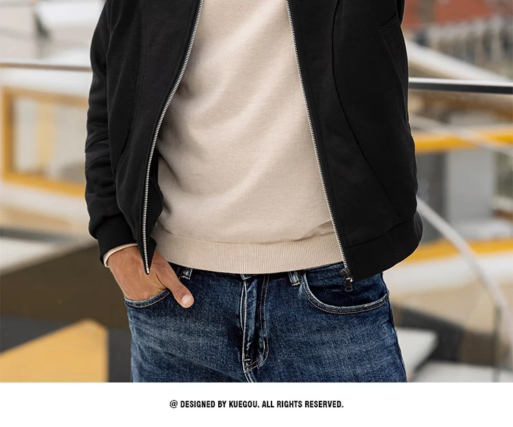 Мужская толстовка с воротником-стойкой KUEGOU, черная толстовка из ...