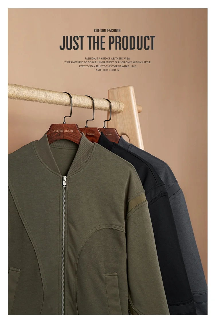 Мужская куртка-бомбер на молнии KUEGOU, Черная бейсбольная куртка-бомбер в стиле пэчворк, осень 2022