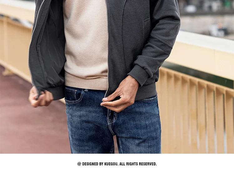 Мужская осенне-зимняя куртка на молнии KUEGOU, черная Повседневная ...