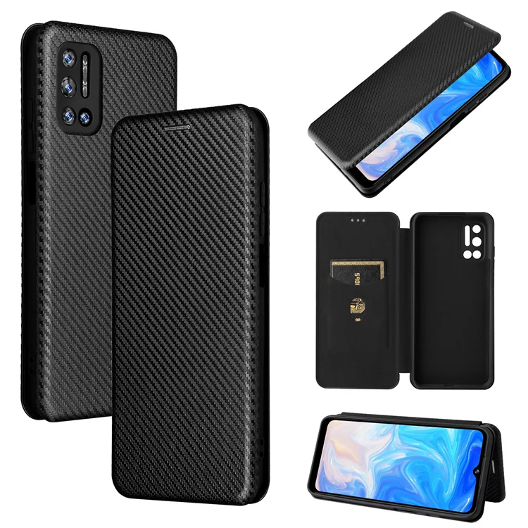 Чехол-книжка для Umidigi A9 Pro, углеродное волокно, Магнитная подс...