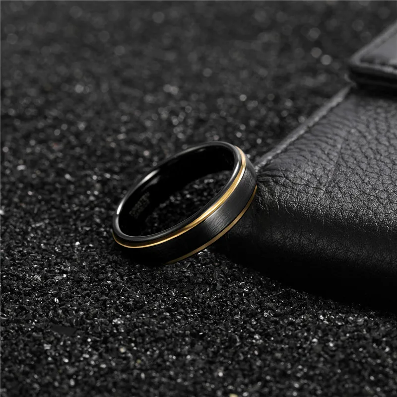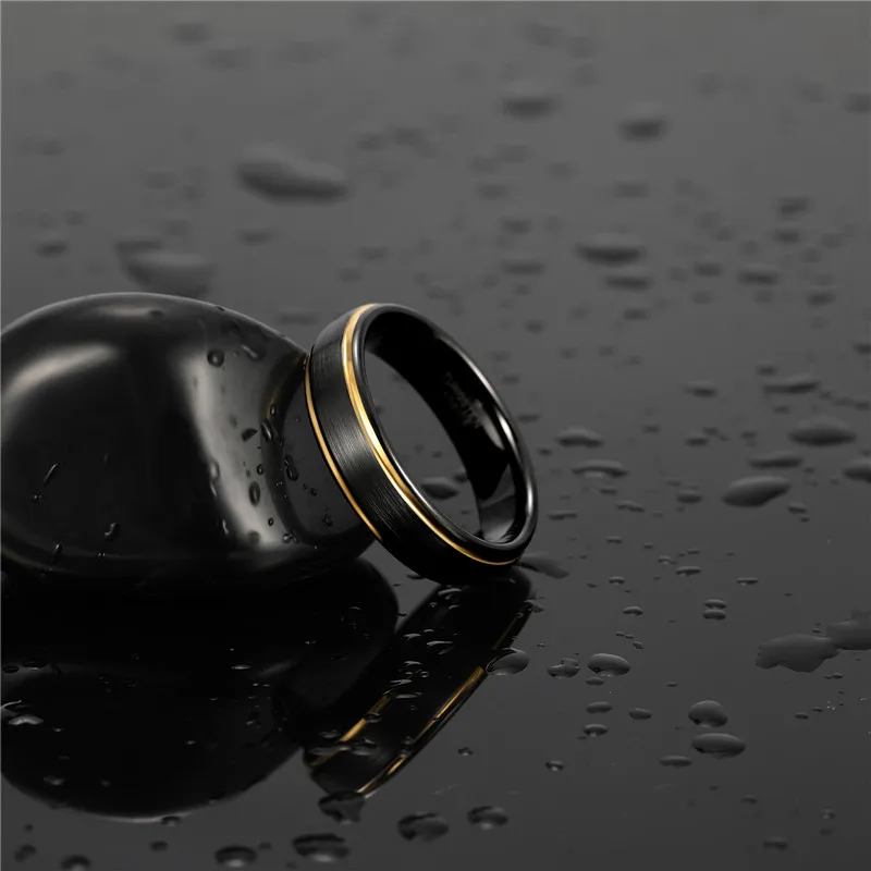 Мужское вольфрамовое кольцо TIGRADE, черное с золотой линией, 8 мм,...