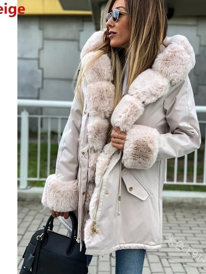 2021 зимняя Элегантная ЛедиСвободные/с капюшоном из искусственного меха/хлопковые куртки/однотонные/с длинными рукавами/теплые/пальто Верхняя одежда/размера плюс S-5XL