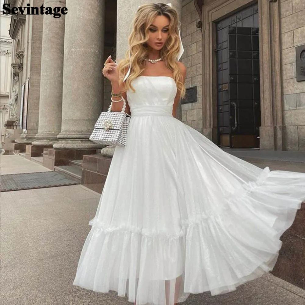 Женское вечернее платье средней длины Sevintage, белое фатиновое платье с многоярусной юбкой, до щиколотки, для выпускного вечера