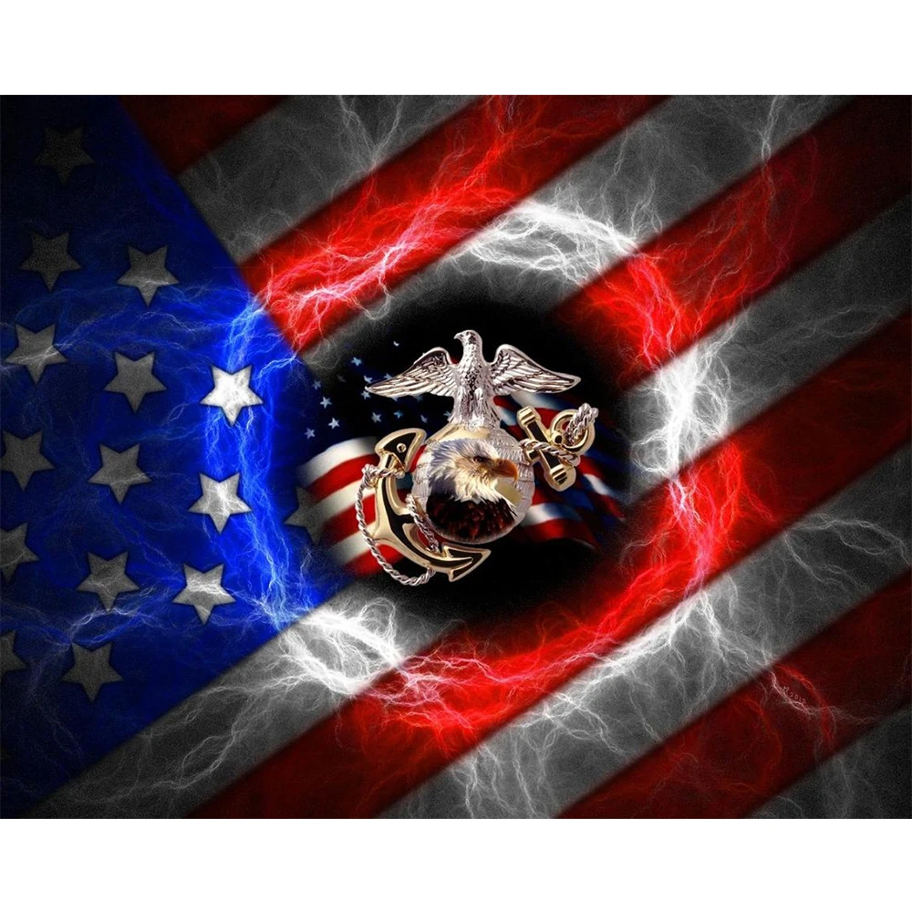 Div 5D военный морской флаг, американский полноразмерный Алмазный рисунок, наборы для вышивки крестиком, живописный художественный 3D-рисунок алмазами