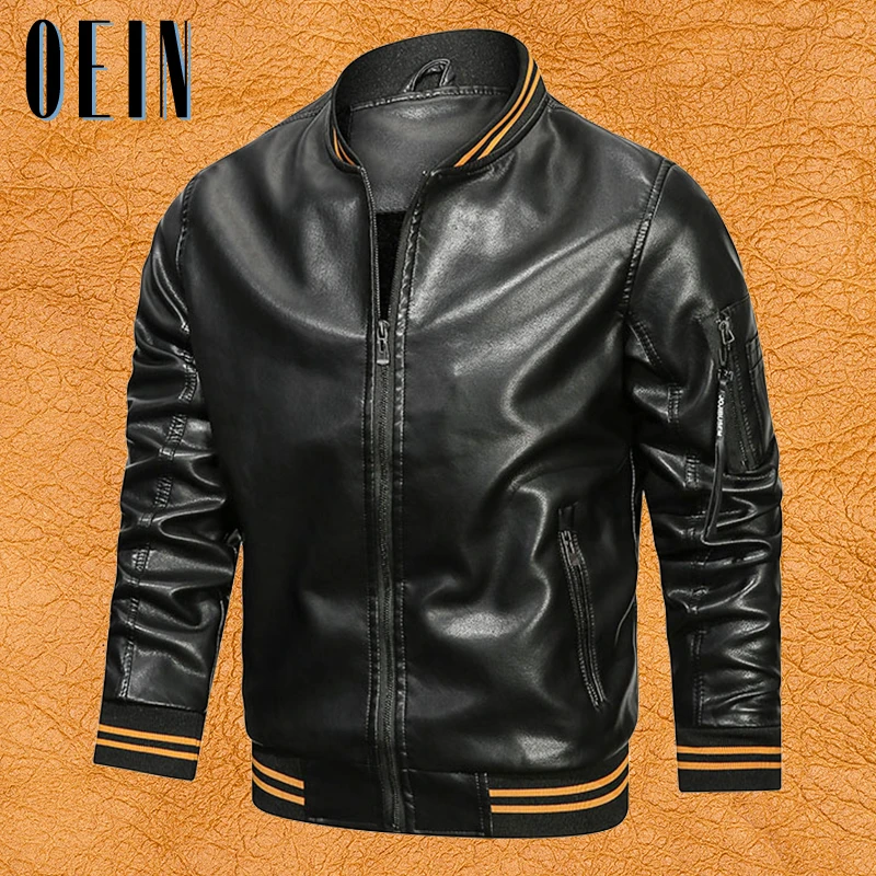 OEIN мужская повседневная Байкерская кожаная куртка 2021 Новая ветровка мужская модная винтажная верхняя одежда на молнии мужские Куртки из искусственной кожи