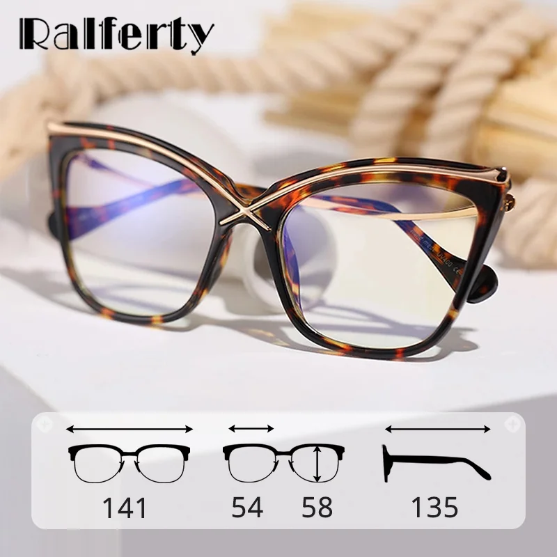 Ralferty женские прозрачные очки оверсайз кошачий глаз Ретро леопардовая большая оптическая оправа для очков Женская 0 диоптрия прозрачная оправа для очков