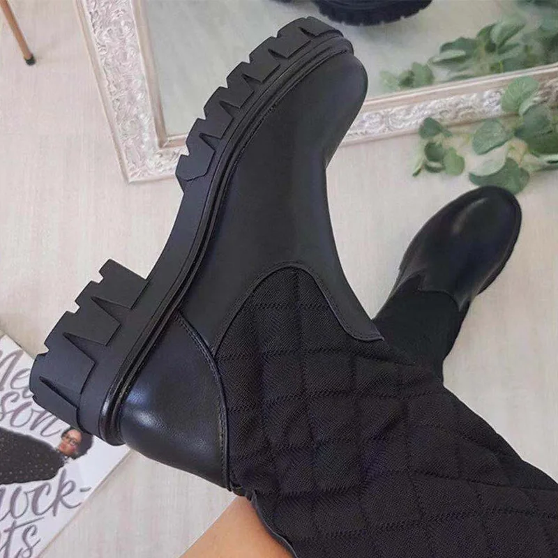 Женские высокие сапоги; Женские Сапоги выше колена; Стрейчевые вязаные носки; Женские высокие сапоги на массивном каблуке, на молнии, на платформе; Новинка зимы