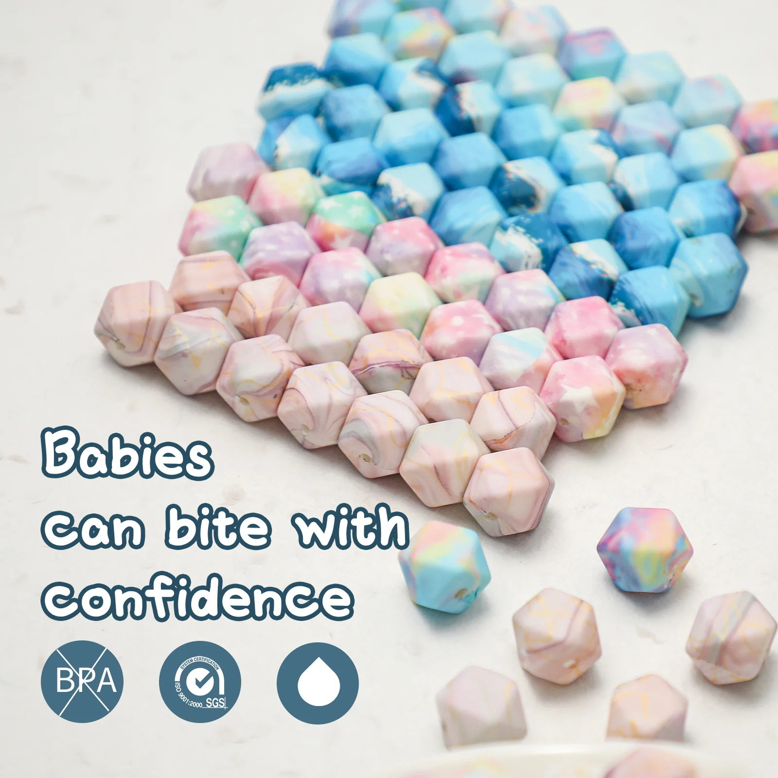 5 шт. Восьмиугольные шестиугольные бусины 14 мм силиконовые бусины для прорезывания зубов для малышей DIY аксессуары для ожерелья Детские Прорезыватели подарки для медсестры