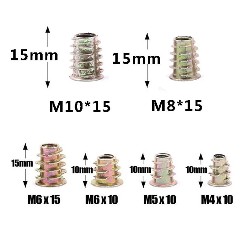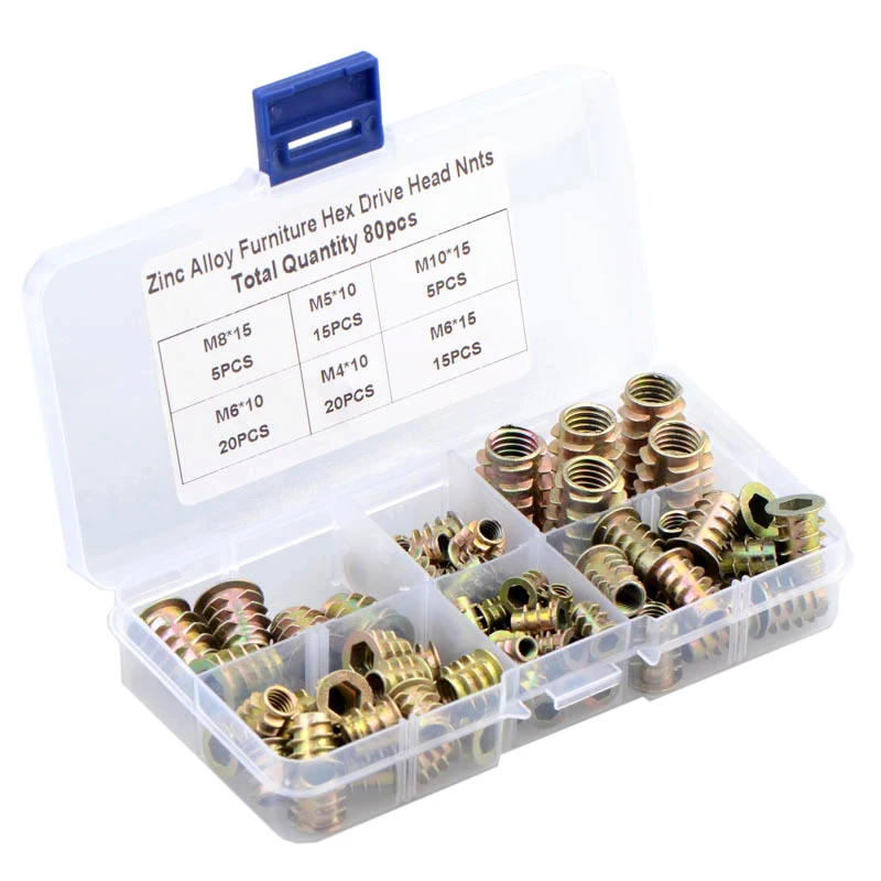 80 шт. резьба для деревянной вставки гайка фланцевый шестигранный привод M4 M5 M6 M8 Встраиваемая деревянная вставка из цинкового сплава гайка для мебели набор в ассортименте