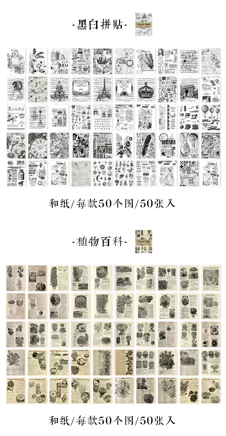 50 шт. винтажные бумажные стикеры Washi набор старых времена газетн...