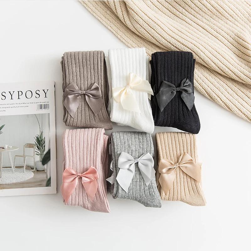 Милые колготки с бантом для девочек, мягкие хлопковые вязаные чулки для маленьких девочек, колготки для новорожденных, детские зимние колготки, 0-8 лет колготки для мальчиков колготки для девочек колготки детские