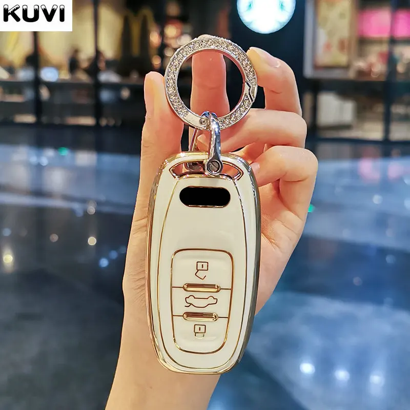 Роскошный ТПУ чехол для автомобильного ключа чехол для Audi A1 A3 8V A4 B8 B9 A5 A6 C7 A7 A8 Q3 Q5 Q7 S4 S6 S7 S8 R8 TT держатель аксессуары