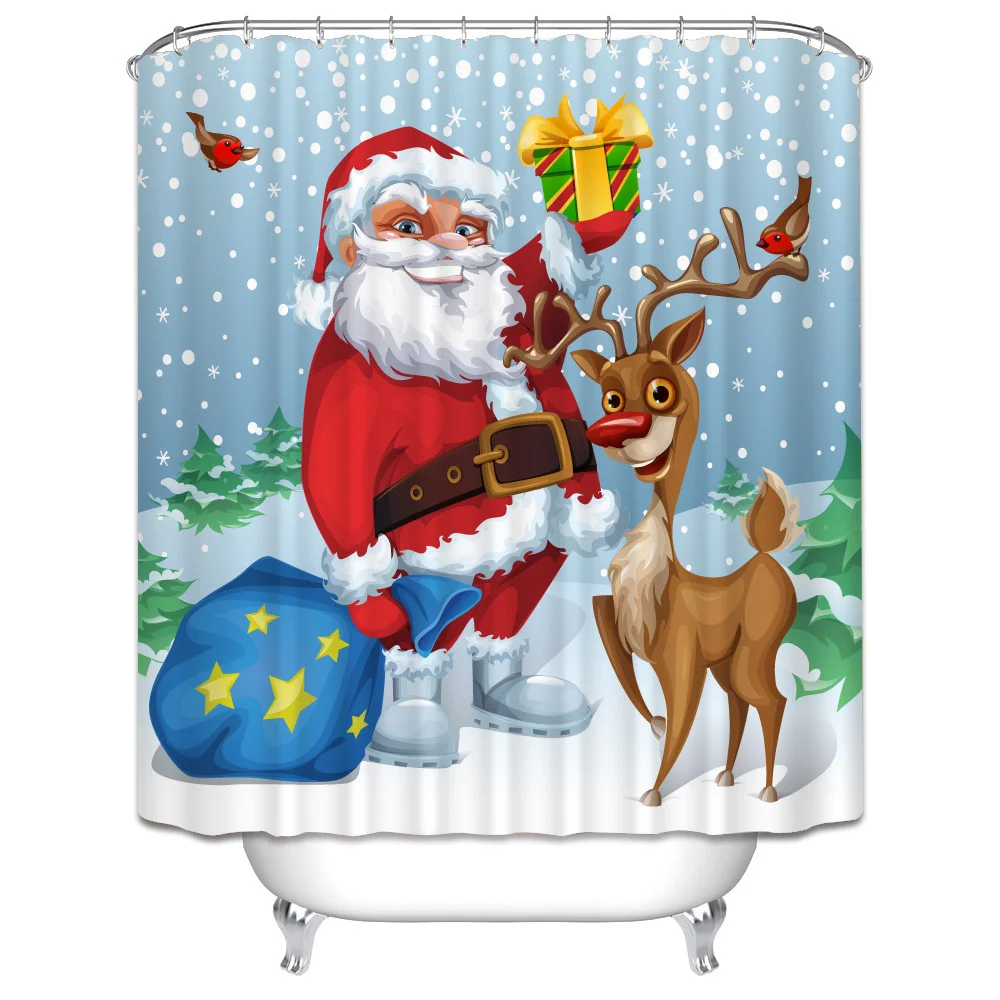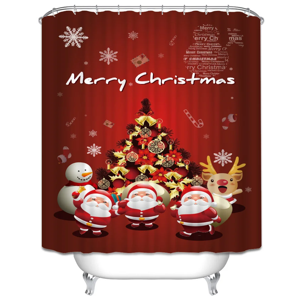 Рождественская душевая занавеска С 3D принтом, водонепроницаемая Ро...