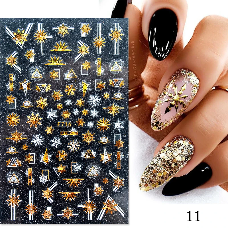 Золотистые белые бронзирующие 3d-снежинки, листья, Геометрические линии, буквы для маникюра, слайдеры, аксессуары для украшения