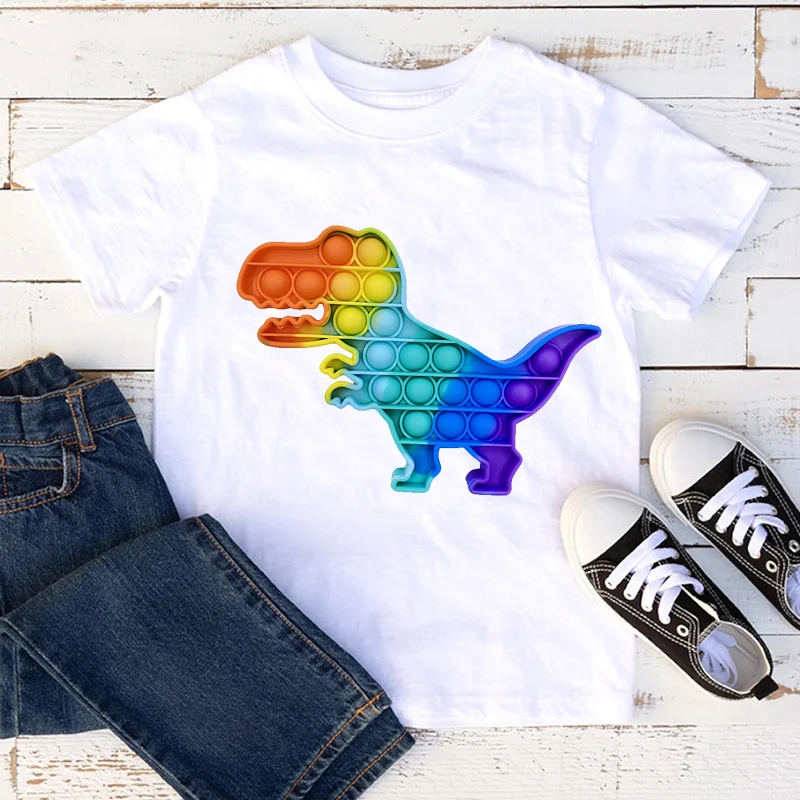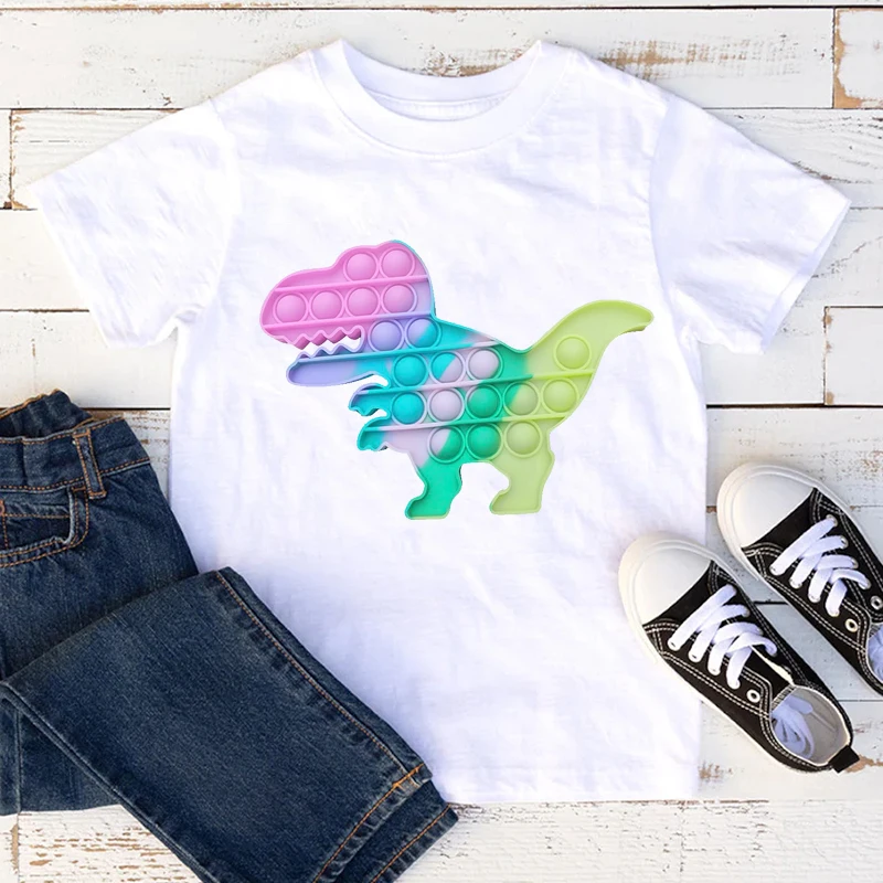 Забавные футболки для мальчиков и девочек, детские футболки с принтом фиджет-игрушки, динозавр, мультяшное животное, попит, летняя модная детская одежда, рубашки
