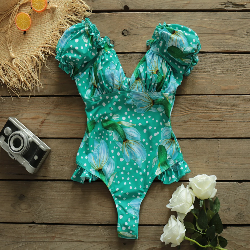 2022 сексуальный слитный купальник с принтом, купальник с оборками,...