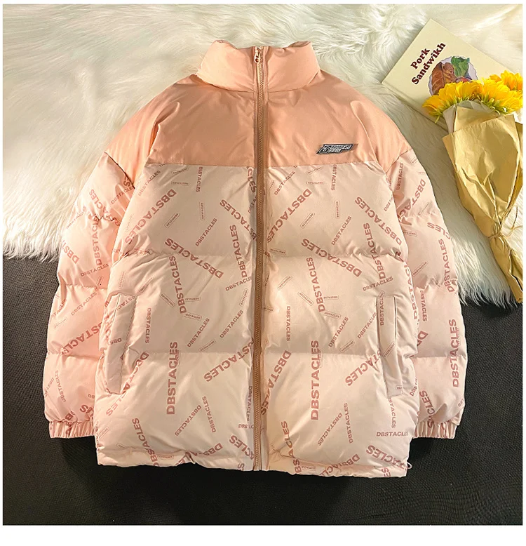 Hybskr, зима 2021, новинка, женская зимняя Толстая теплая куртка с надписью и графическим рисунком, Женское пальто с воротником-стойкой и хлопковой подкладкой в Корейском стиле